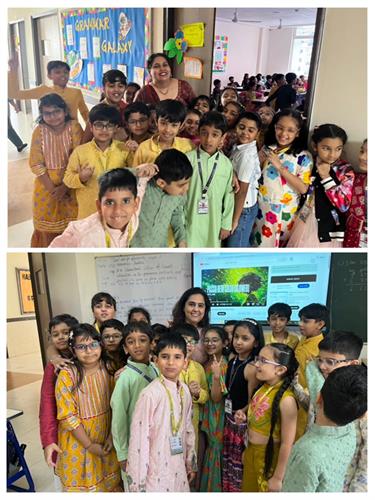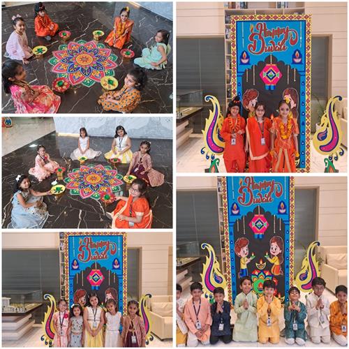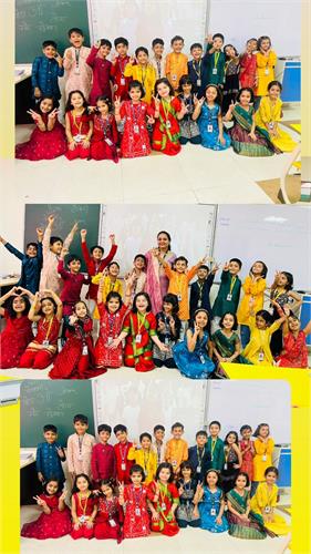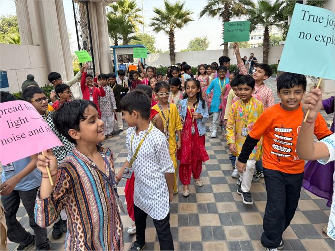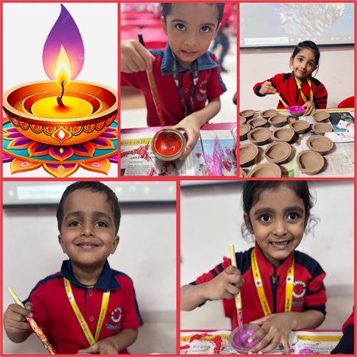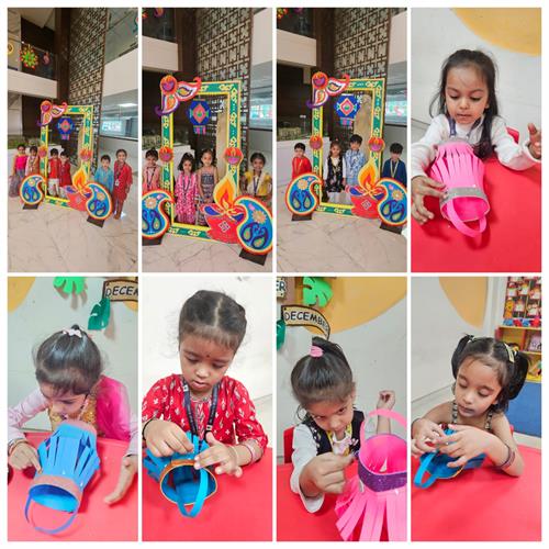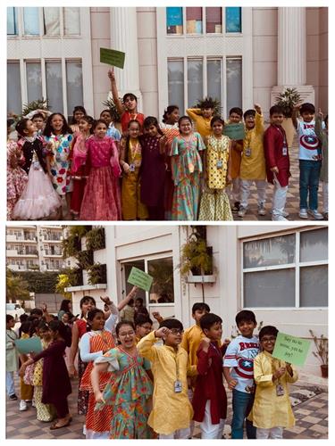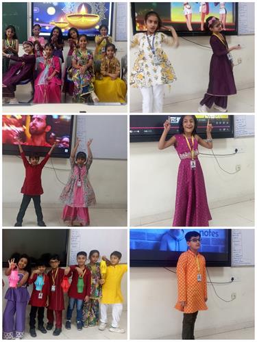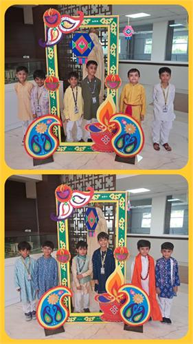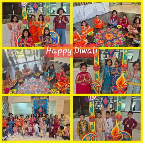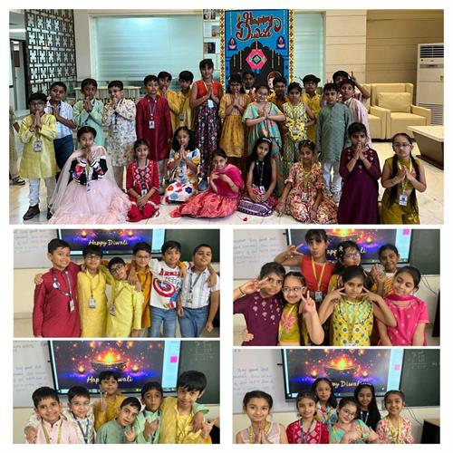 The Primary Wing celebrated Diwali with equal enthusiasm. Grade I students began the day with a captivating Diwali assembly followed by a cheerful class party and an origami diya-making activity. They also pledged to celebrate a Green and Clean Diwali, promoting the message of environmental sustainability. Grade II students, dressed in traditional attire, enjoyed a delightful class party and created their own diyas, adding a touch of creativity to the celebration. Grade III students took the festivities a step further by conducting an Anti-Cracker Awareness Drive, spreading awareness about protecting the environment from pollution.