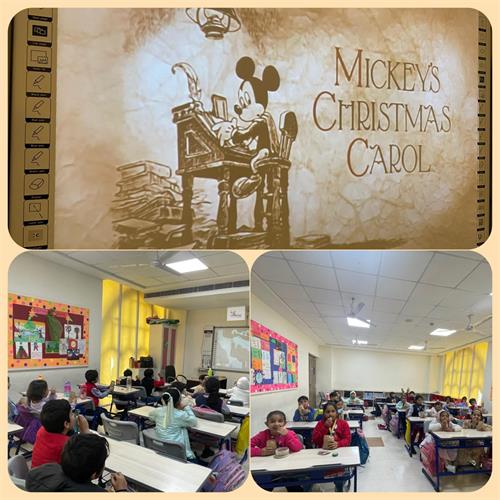 Students from the primary section also joined in the celebration. Grade I explored the whimsical world of Alice in Wonderland, while Grade II enjoyed a lively session of Disney Freeze Dance followed by drawing their favourite Disney characters, allowing them to express their creativity and love for the iconic stories. Grade III embraced the festive spirit through Mickey’s Christmas Carol, deepening their appreciation for classic Disney storytelling.