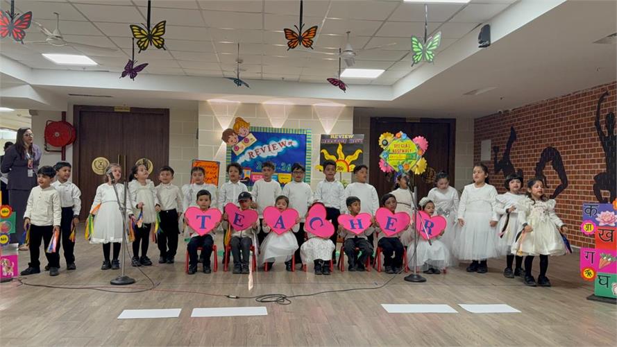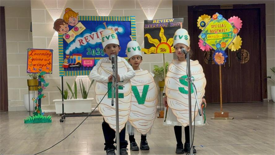The dazzling stars then presented a melodious song highlighting the pivotal role of teachers in shaping their learning journey and expressed heartfelt gratitude to them. This was followed by a meaningful skit that creatively depicted the academic journey of 2025–26 through the stages of a butterfly’s life cycle.The academic year 2025-26 was a transformative journey, mirroring a butterfly's life cycle - from learning the basics  to growing foundational skills, exploring and understanding, and finally spreading wings with confidence and joy.