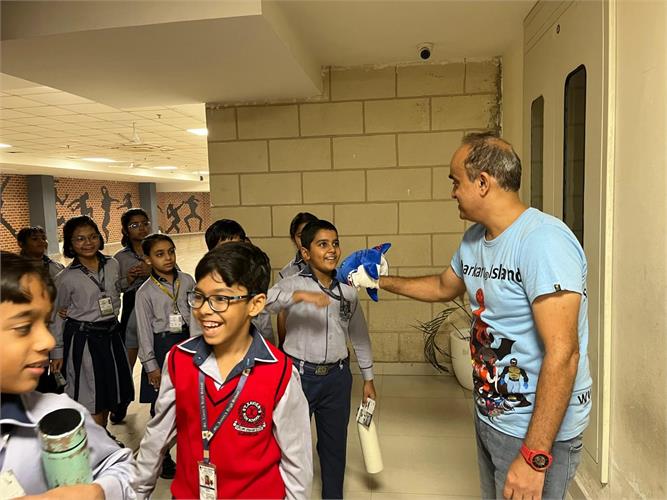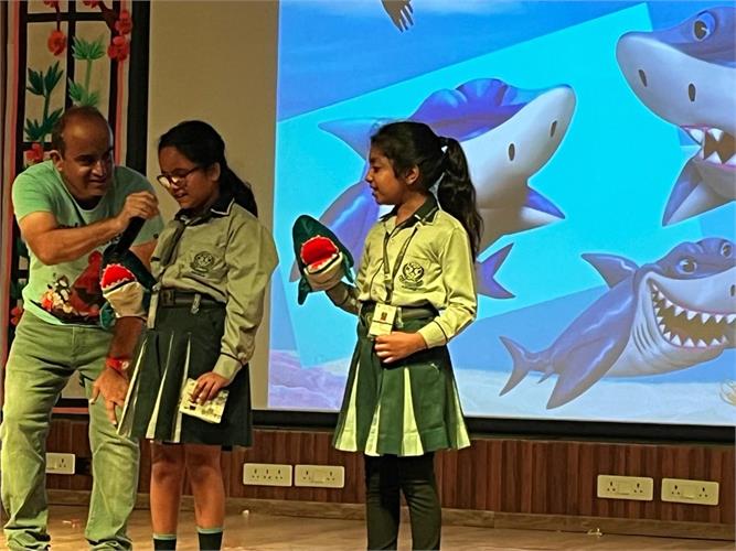 Through his popular Super Sharkaru series, Mr. Agnihotri captivated the young audience with tales of courage, creativity, and compassion. The students were thrilled to embark on an underwater adventure, discovering how even the smallest actions can make a big difference to our planet. The workshop beautifully wove in themes of sustainability and environmental awareness, encouraging children to care for marine life and reduce pollution through mindful habits.